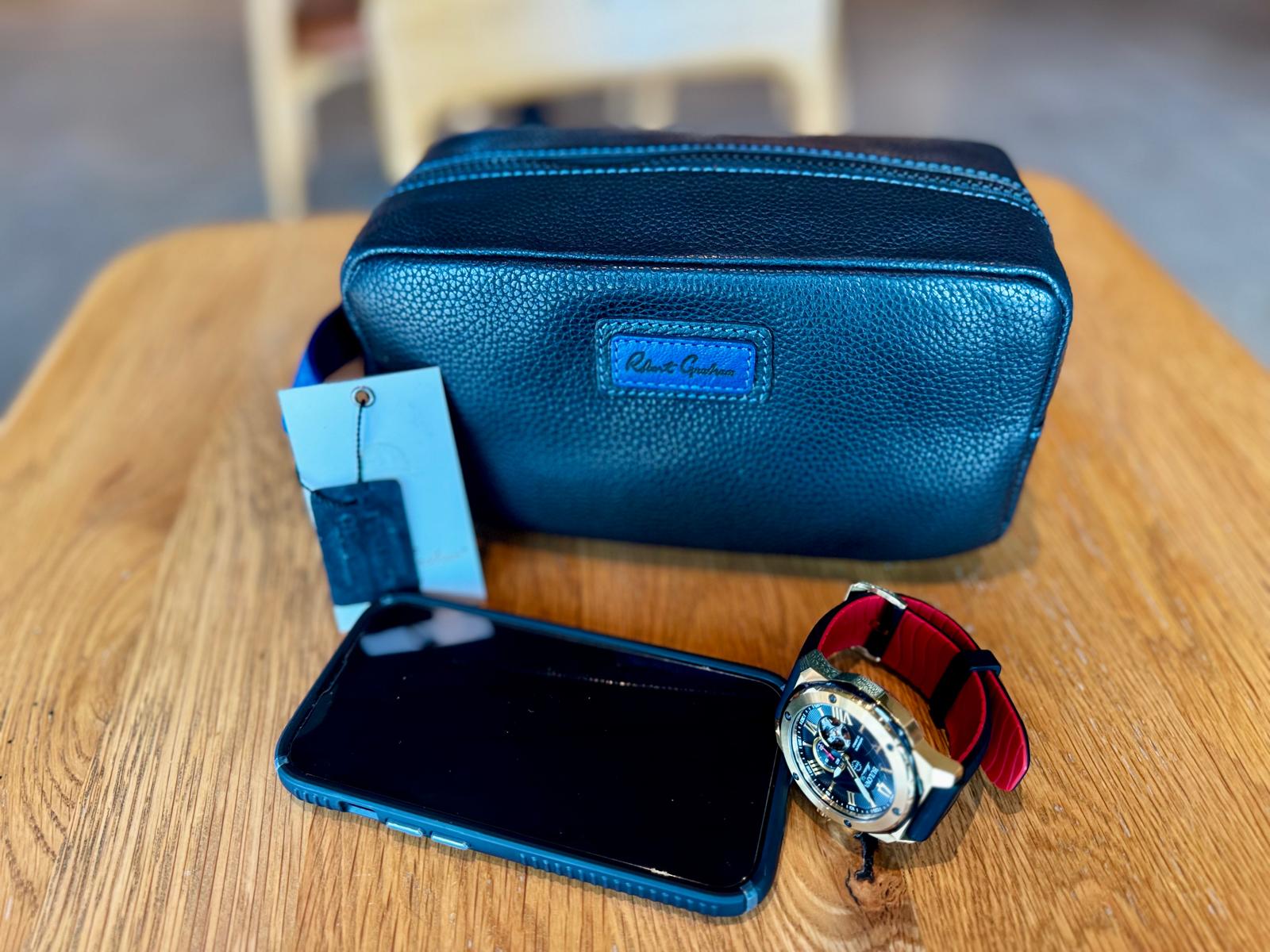 Bolsa organizadora de piel sintética premium con diseño elegante y textura tipo grano fino. Pensada para quienes buscan estilo y practicidad en un solo accesorio. Su tamaño compacto permite llevar de forma segura artículos esenciales como celular, cartera, reloj, llaves o accesorios personales.
